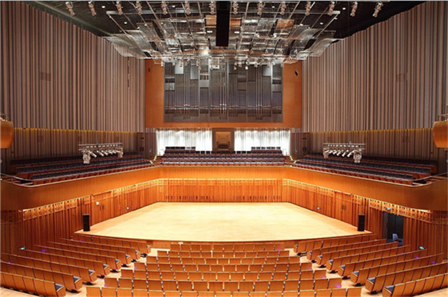 例如,在打開窗戶的那一面,由于完全不反射它所碰到的聲音能源,因而吸音率為100%,亦即該面為完全吸音面,但同時(shí)也可能有完全無法隔音的面存在。室內(nèi)之吸音程度大時(shí),即能壓制室內(nèi)的擴(kuò)散音并降低噪音水平。此方法系遠(yuǎn)離噪音源和影響點(diǎn)時(shí)會(huì)有效果,但若室內(nèi)各處都有噪音源且和影響點(diǎn)之距離相近時(shí),例如窗邊的座位對(duì)由窗戶入侵的聲音,因?yàn)樵胍舻闹苯佑绊懱?,故而其藉由吸音所產(chǎn)生的隔音效果不會(huì)太顯著。音樂廳聲學(xué)設(shè)計(jì)的指標(biāo)**的具有高雅文化氛圍的專業(yè)性音樂廳可供自然聲演出,并適應(yīng)多種風(fēng)格的音樂作品演出。