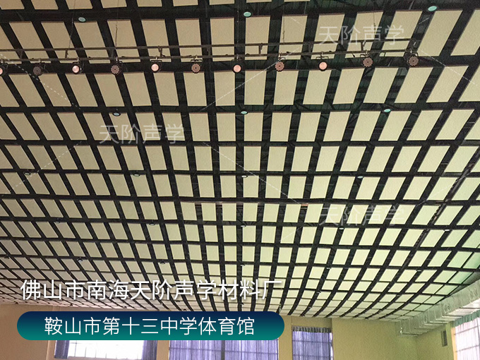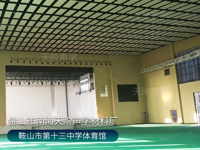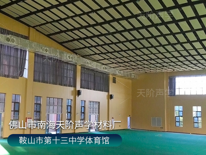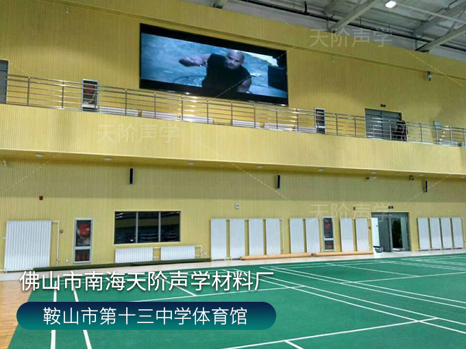 鞍山市第十三中學(xué)體育館,墻面使用槽木吸音板,基材選用不燃堅(jiān)硬的玻鎂基材,飾面選用活力青春的色調(diào)。條形開槽吸音板,吸音效果顯著,能吸收活動期間的噪音,回聲。