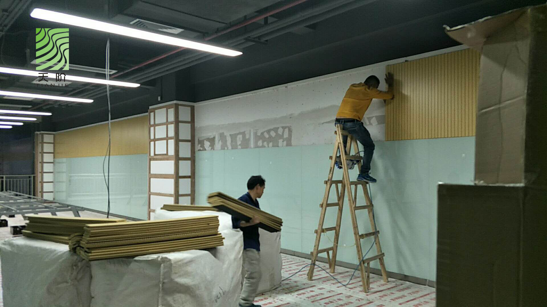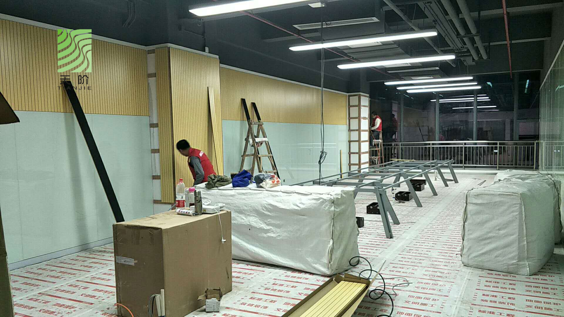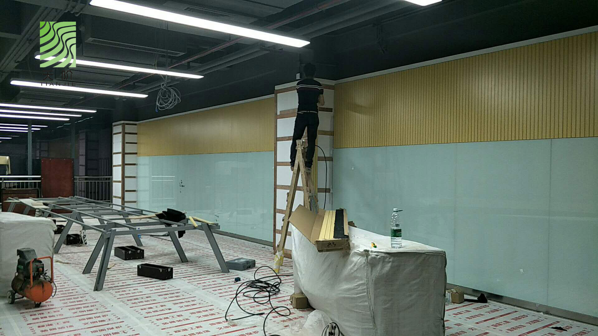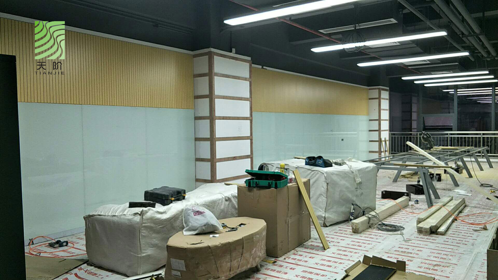 東莞藍(lán)思科技有限公司辦公室經(jīng)和多家吸音板公司對(duì)比,最終選用了天階吸音板,安裝效果圖如下: