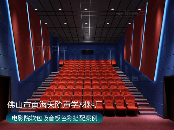 低調(diào)神秘的深色色調(diào)電影院設(shè)計,墻面選用聚酯纖維吸音板,拼色安裝設(shè)計,做不燃處理,舒適又安心,吸收噪音雜音很有效果。