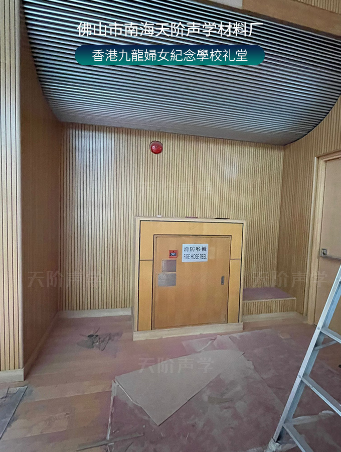 香港九龍婦女紀念學校禮堂,墻面安裝木質(zhì)吸音板