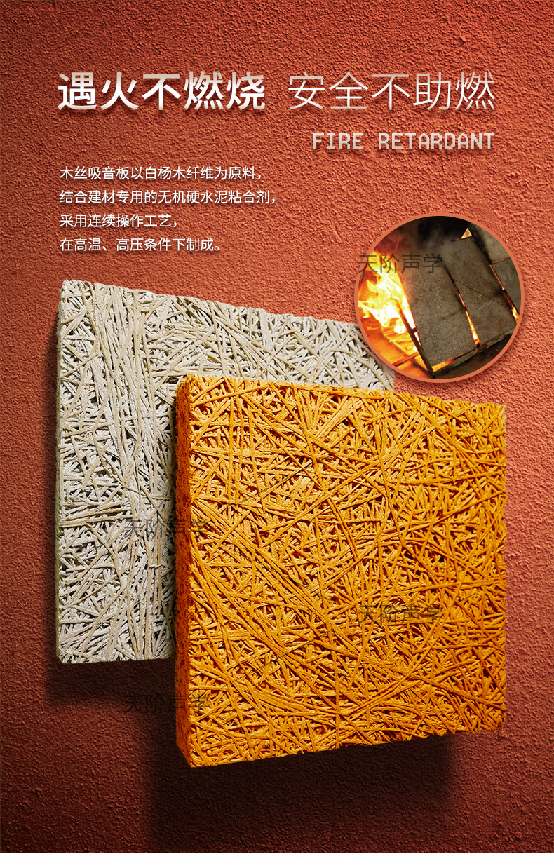 木絲吸音板以白楊木纖維為原料,結(jié)合獨(dú)特的無(wú)機(jī)硬水泥粘合劑,采用連續(xù)操作工藝,在高溫、高壓條件下制成。該產(chǎn)品擁有只有通過(guò)合成若干不同的建筑材料才能獲得的物理特性。外觀獨(dú)特、吸音良好--獨(dú)有的表面絲狀紋理,給人一種原始粗獷的感覺(jué),滿足了現(xiàn)代人回歸自然的理念。表面可做飾面噴色和噴繪處理.
