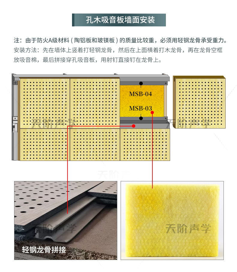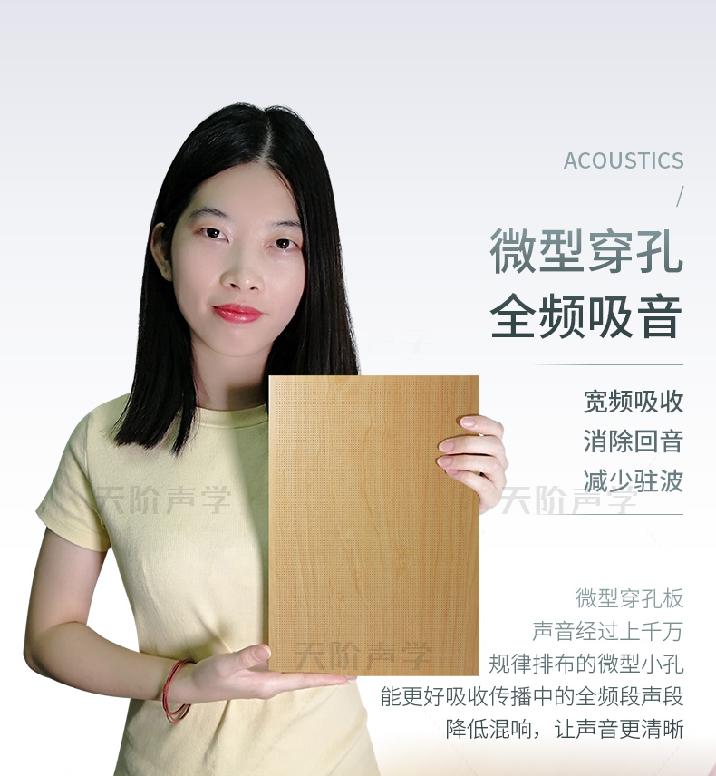 孔木吸音板是一種在密度板上直接穿孔的共振吸聲材料。孔木吸音板對吸聲頻譜選擇性較強,對低頻有很好的吸聲性能。如在吸聲結(jié)構(gòu)后空腔上填入適量的吸聲棉可提高中、高頻吸聲效果。 我們的孔木吸音板: 天階聲學(xué)孔木吸音板采用高質(zhì)的中纖板、具有環(huán)保、防火、防潮等性能,飾面顏色及材料選擇性廣,能很好地滿足客戶多樣化的聲學(xué)及裝飾需求。較槽木吸音板,孔木吸音板相對抗撞擊能力強。