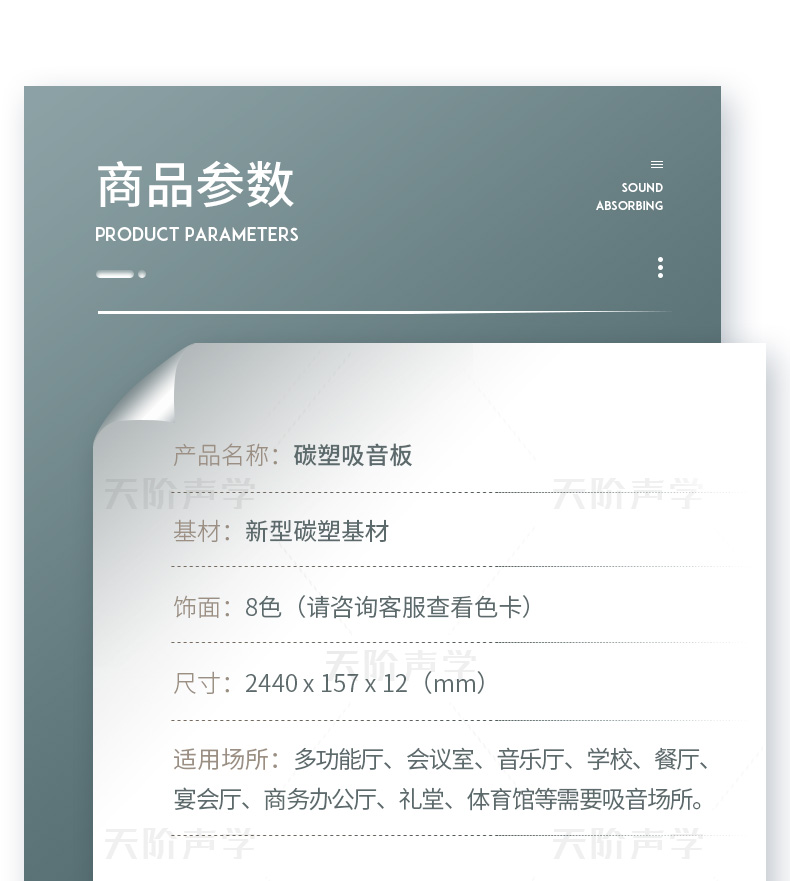 適用場(chǎng)所:多功能廳、會(huì)議室、音樂(lè)廳、學(xué)校、琴房、錄音室、餐廳、宴會(huì)廳、商務(wù)辦公廳、禮堂、體育館等。
