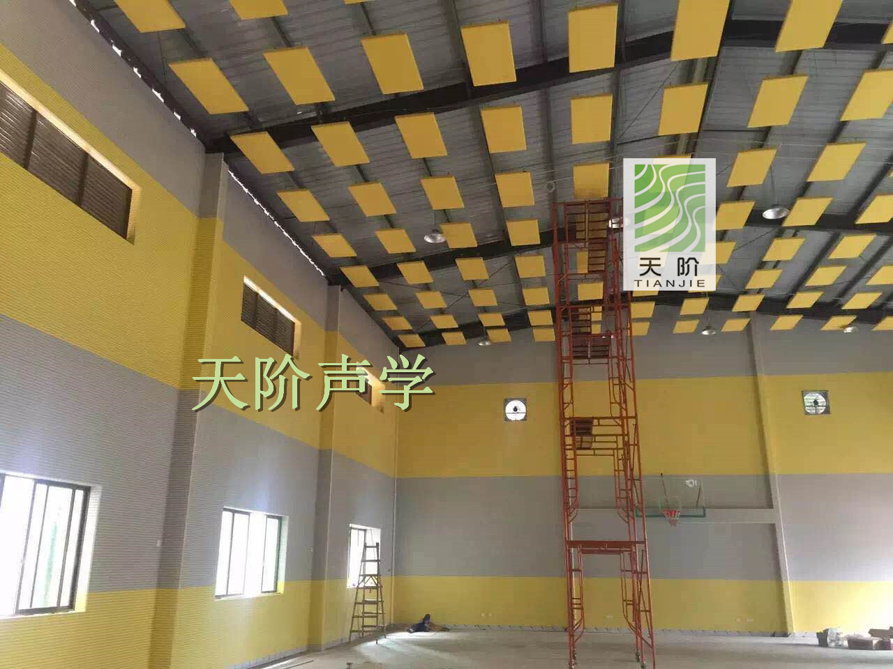 常德南源實驗學(xué)校需要建一所室內(nèi)體育館。學(xué)校特地邀請了專業(yè)的聲學(xué)設(shè)計師進(jìn)行設(shè)計,選用了平板空間吸聲體??臻g吸聲體是一種懸掛在頂棚具有高效吸收性能的吸聲材料??臻g吸聲體一般水平或者垂直吊掛。