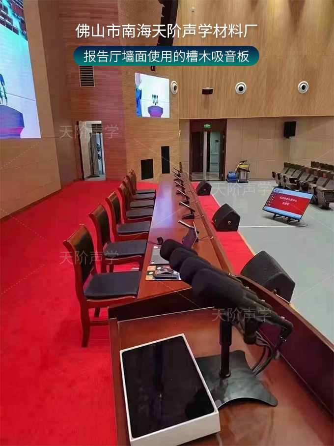 佛山天階吸音板生產(chǎn)廠家 發(fā)布日期:2023-06-14大型報(bào)告廳墻面安裝槽木吸音板