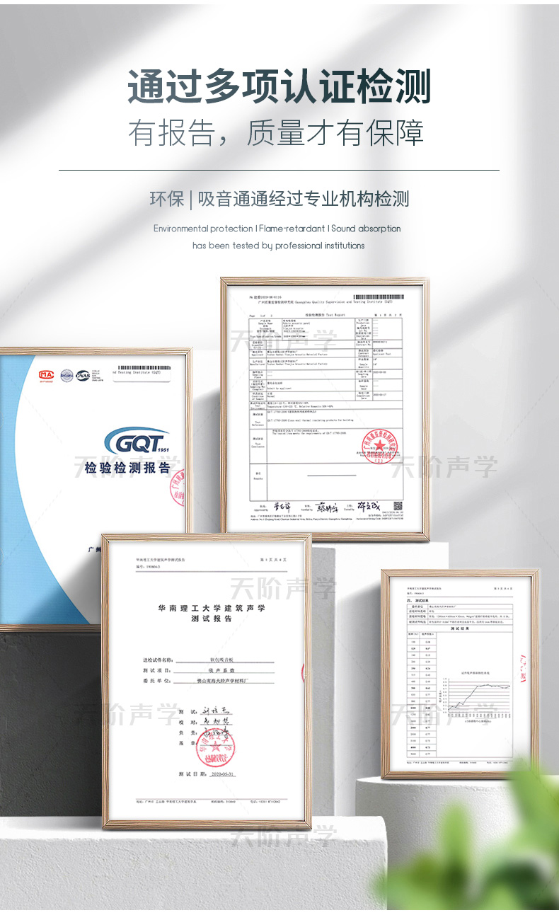 基材:96kg/m3 高密度玻璃纖維棉,聚酯板,中纖板(9cm素板)